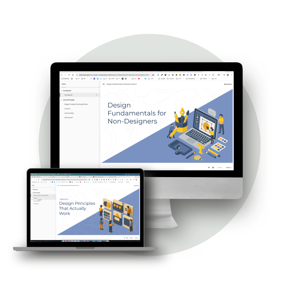 This training shows new business owners how to design their branding and marketing materials using the basics of design. The example provided here consists of the introduction and lesson one